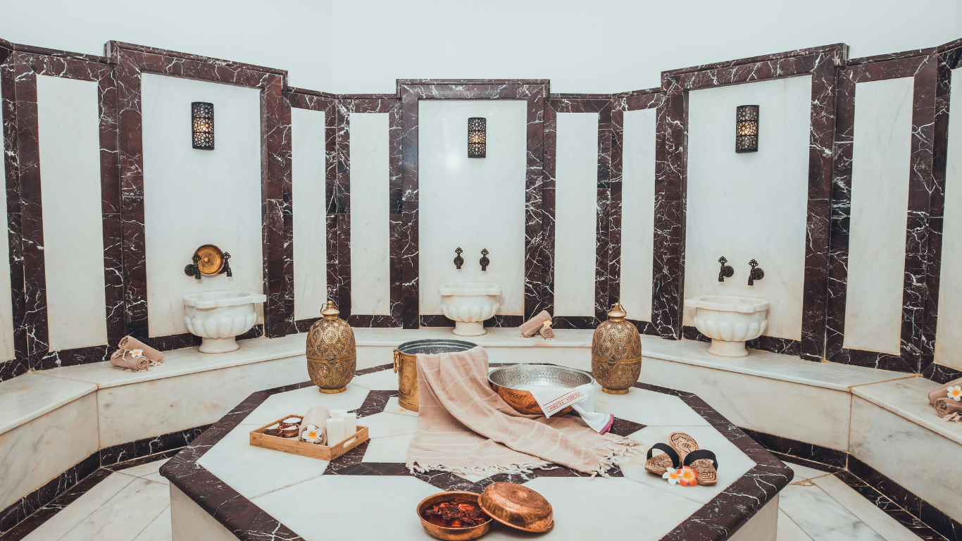 Hammam privatisé, gommage savon beldi, vapeur. La pièce maîtresse de tout séjour bien-être au Maroc.